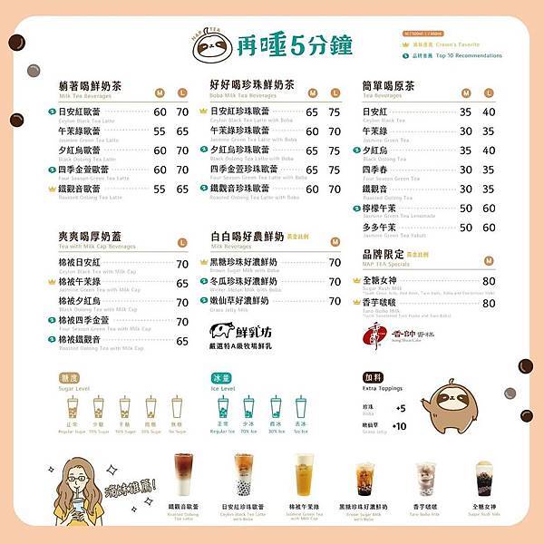 附上菜單!真心覺得還蠻好看的!價位上覺得還算合理,而我發現飲料分類的命名和推薦商品也是有在用心製作!而推薦商品也有分為兩種,一個是滴妹推薦*6種(實體照片可參考菜單下方)其中包括鐵觀音歐蕾、日安紅珍珠歐蕾、棉被午茉綠、黑糖珍珠好濃鮮奶、香芋啵啵、當然一定還有全糖女神,另一個是品牌推薦*10種,其中包括日安紅歐蕾、四季金萱歐蕾、棉被四季金萱、棉被鐵觀音、夕紅烏珍珠歐蕾、鐵觀音珍珠歐蕾、冬瓜珍珠好濃鮮奶、嫩仙草好濃鮮奶、夕紅烏以及檸檬午茉。